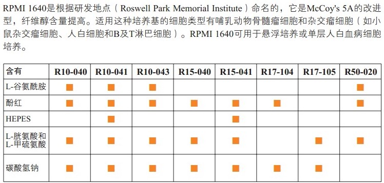 RPMI 1640,1× 說明:含L-谷氨酰胺 運(yùn)輸:15℃至30℃ 貯存:2℃至8℃,有效期18個(gè)月 預(yù)期用途:僅供研究,不用于臨床診斷