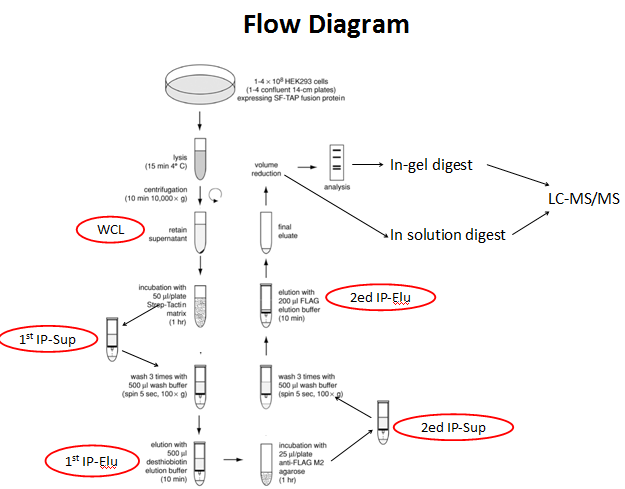基本流程: 構(gòu)建含有目的基因的載體,使目的基因與2個不同的表位標簽融合表達,如Flag、HA、Strep、His、CBP、SBP等等。安提海拉生物科技有限公司采用N端 2*strep tag+Flag tag或者C端 6*His tag+Flag tag雙標簽載體;載體轉(zhuǎn)染細胞并表達融合蛋白“2*strep-Flag –目標蛋白”或“6*His-Flag–目標蛋白”;細胞裂解提取總蛋白,經(jīng)streptactin beads或Nickelbeads和Flag M2 beads的兩步純化和洗脫,更大限度了去除了假陽性蛋白。洗脫液進入質(zhì)譜儀,分析鑒定與目標蛋白具有相互作用的蛋白。