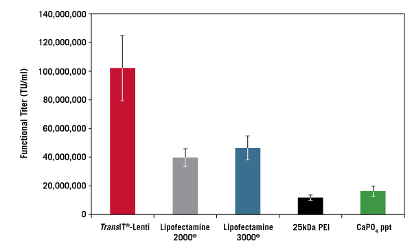 具有 TransIT®-Lenti 轉(zhuǎn)染試劑的高功能滴度。